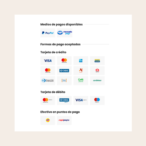 Medios de pagos disponibles