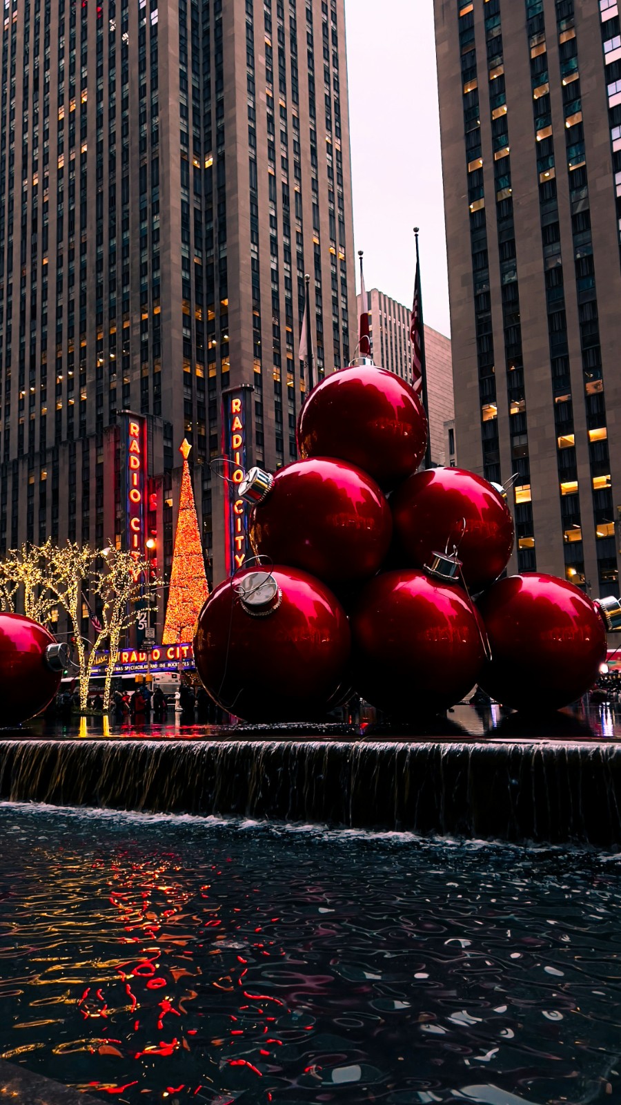 La Sexta Avenida logra superar las expectativas con sus impresionantes decoraciones navideñas. Los enormes adornos rojos sobre la fuente, los bastones de caramelo gigantes, los cascanueces y los árboles navideños icónicos —como el de Fox News o Radio City— 📍 Sixth Ave (entre 48th y 53rd St).